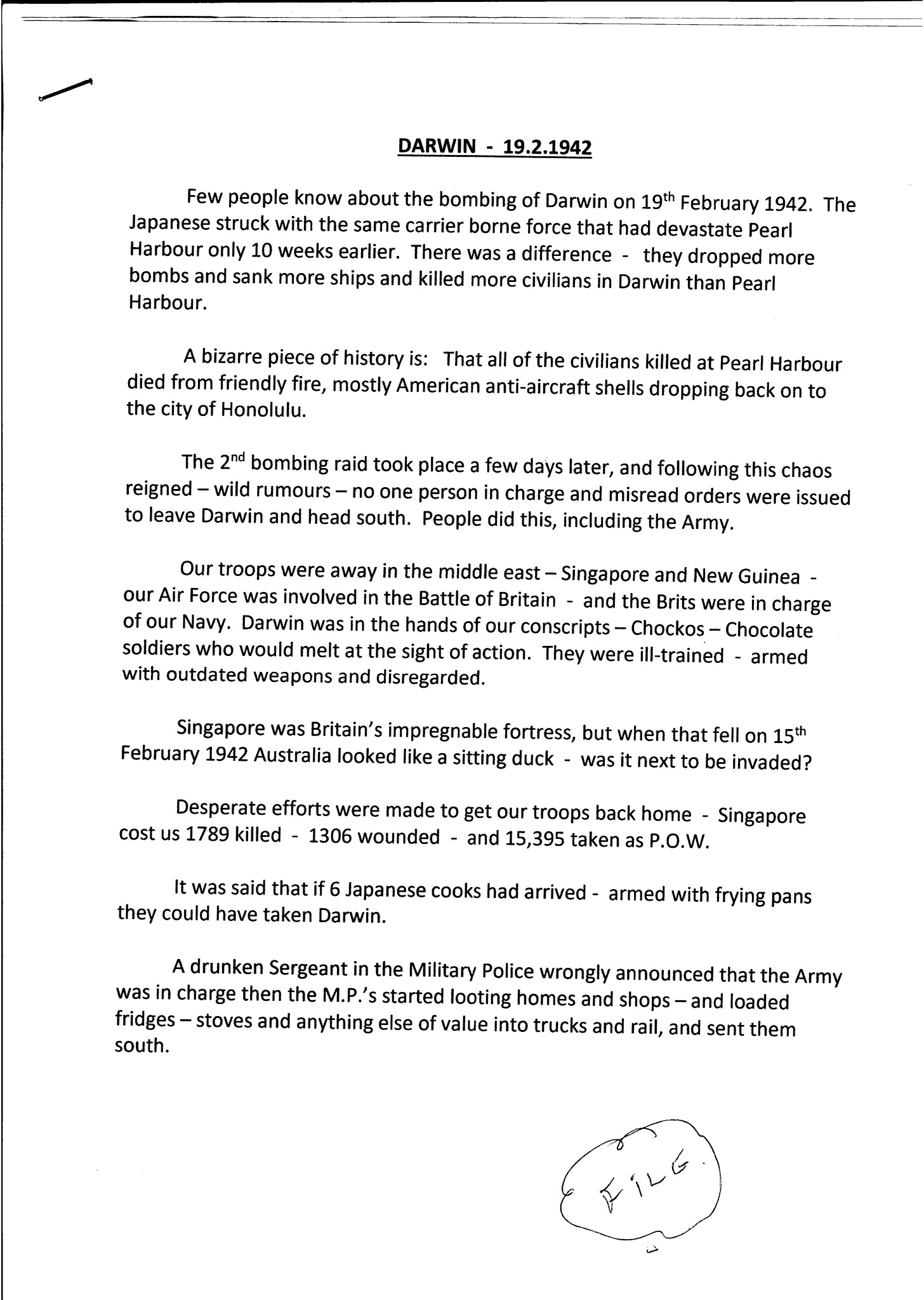 The bombing of Darwin