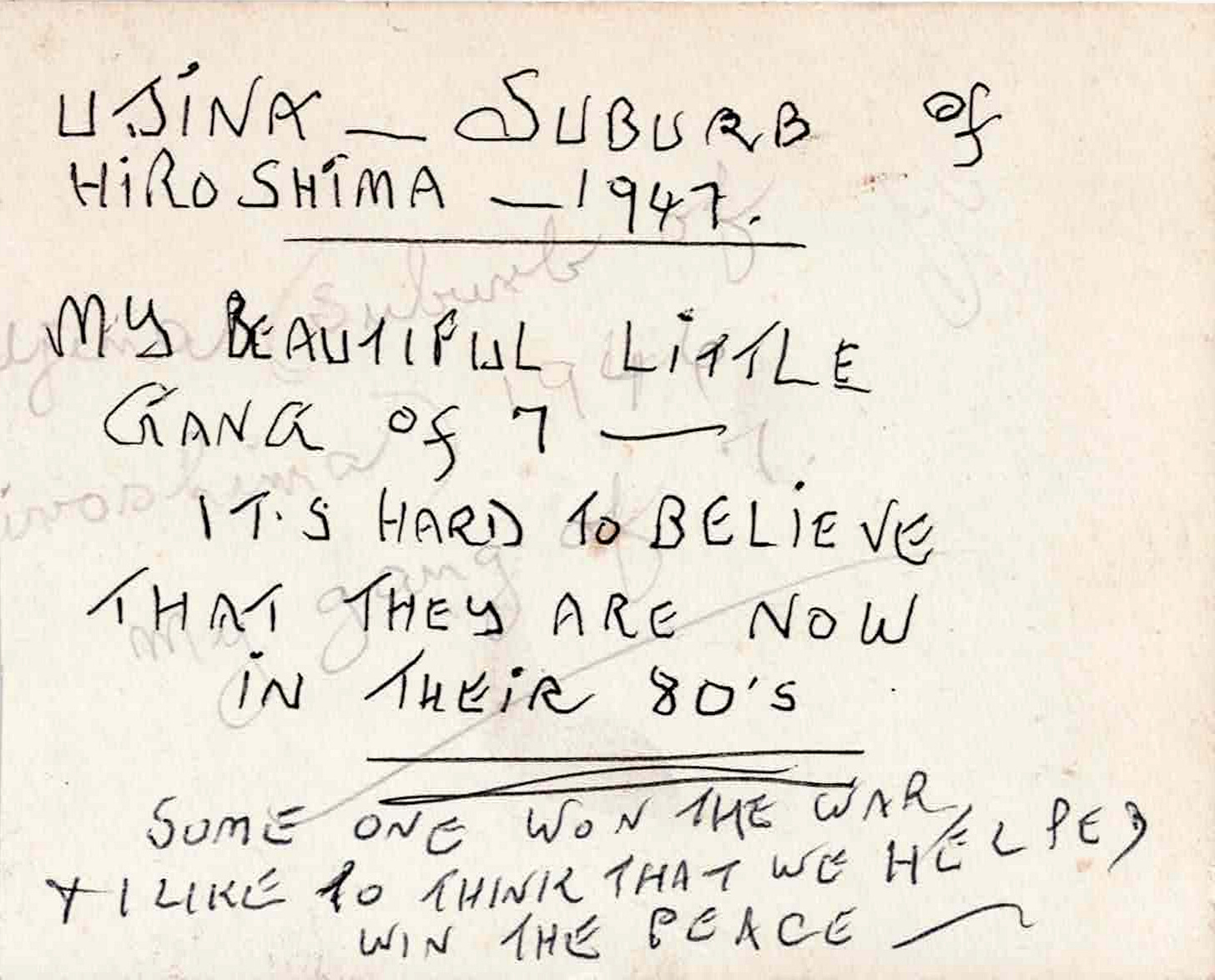 They just called us out on parade one morning. Usual time, six o’clock I think it was. Lined up for the roll call, and they said ‘the war’s now ended.’