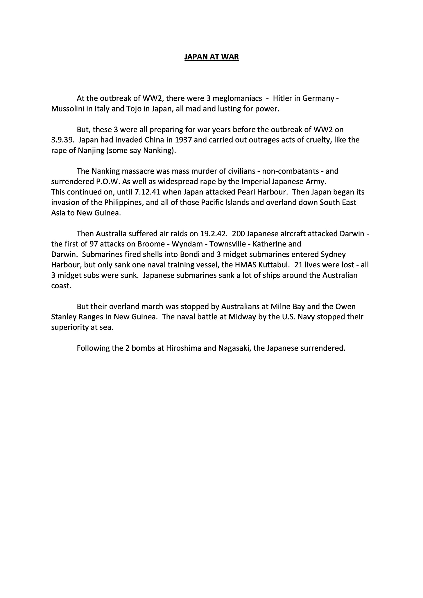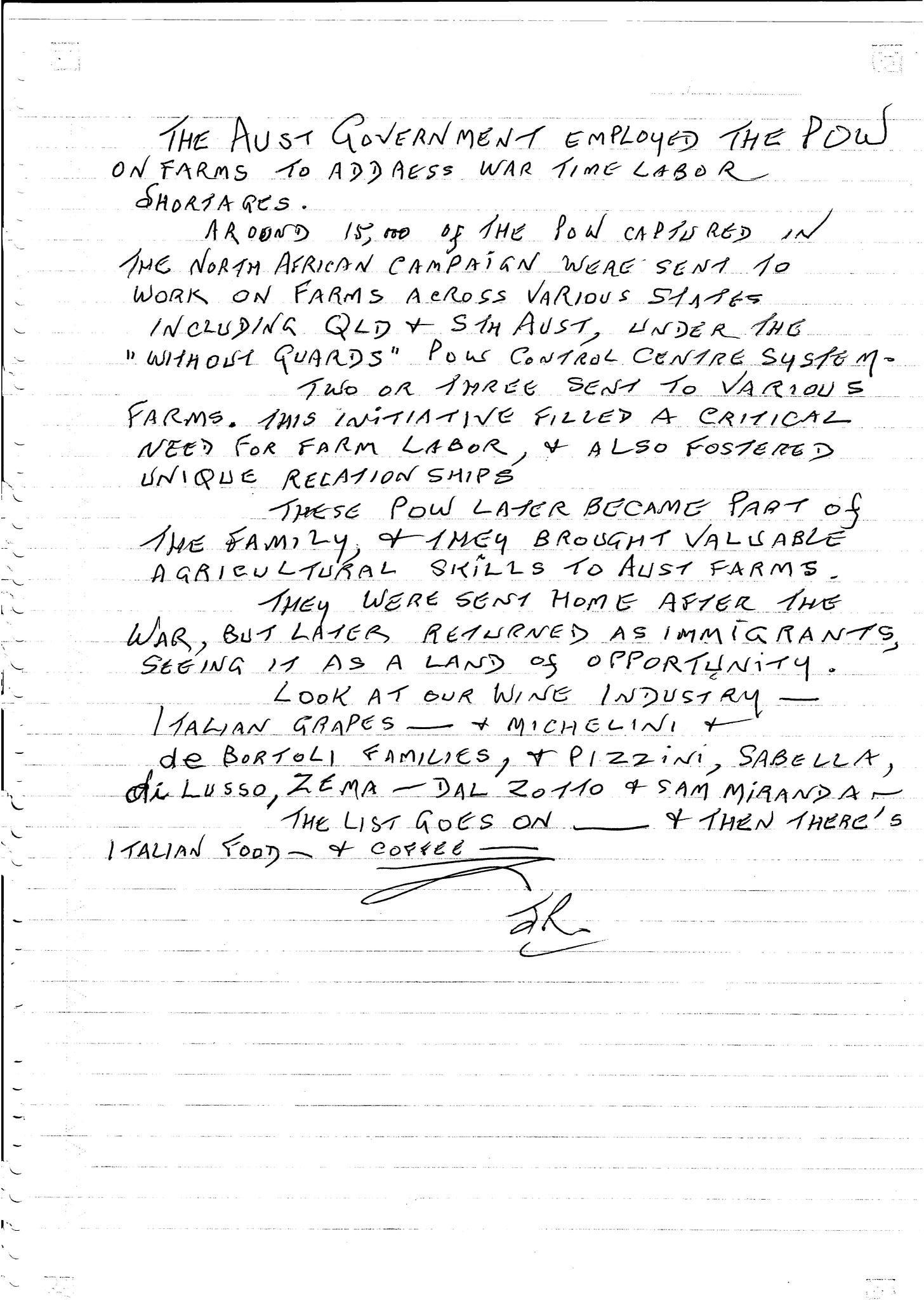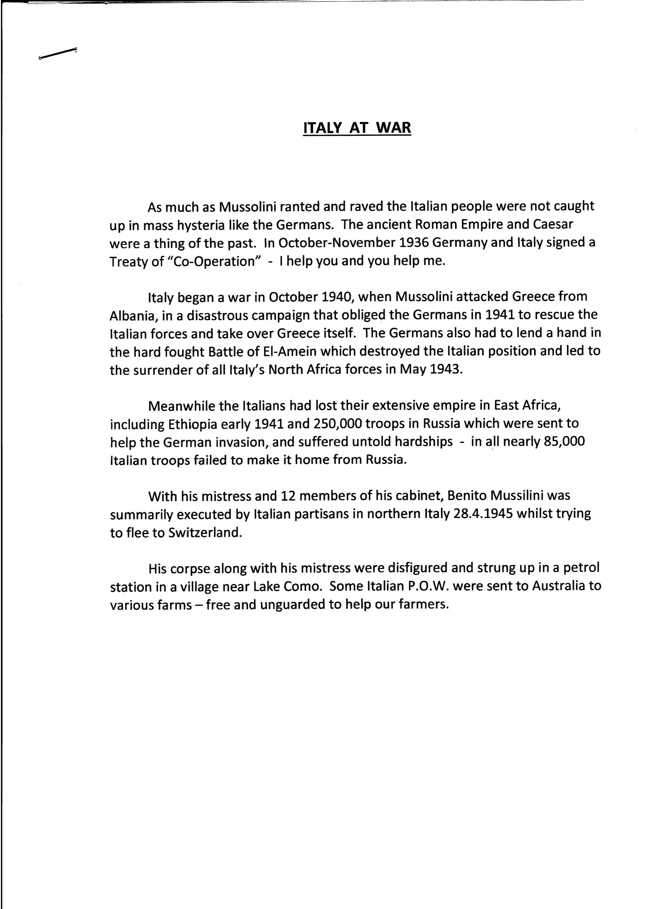 Rose was kind enough to compose a series of brief histories of the Axis powers, which he provided to his typist, and which are duly included as follows. Of particular note is his recounting of Italian prisoners of war in Australia, and how they grew fond of this country.
